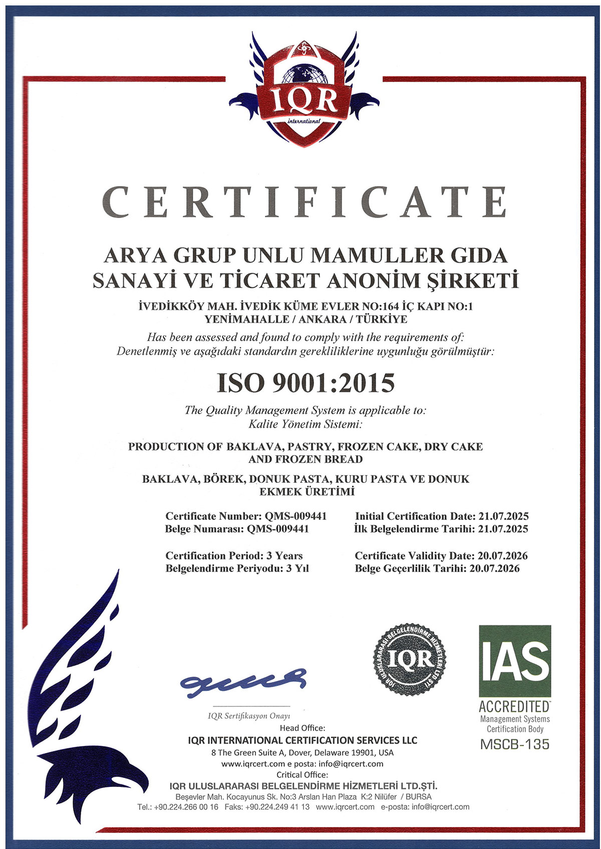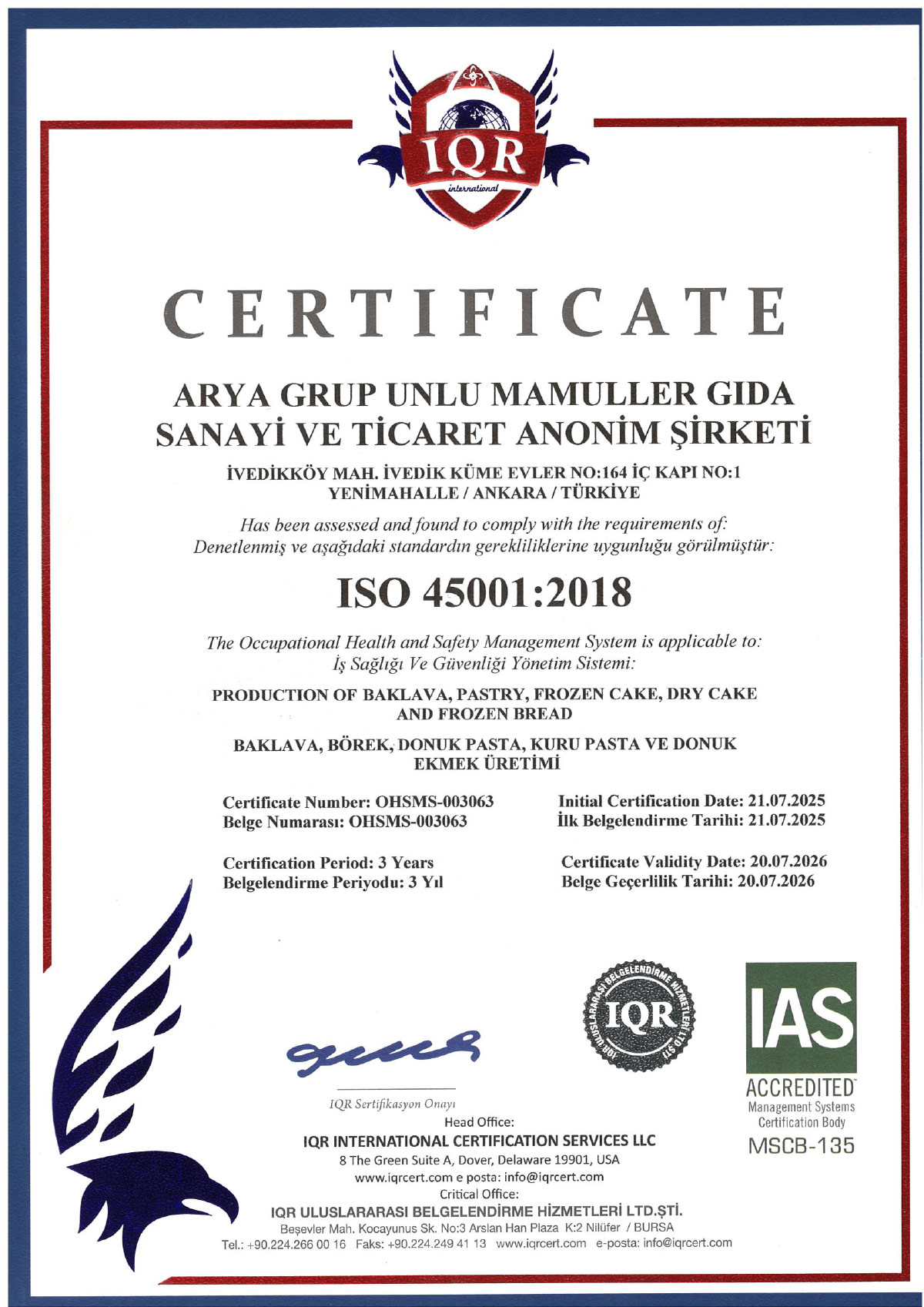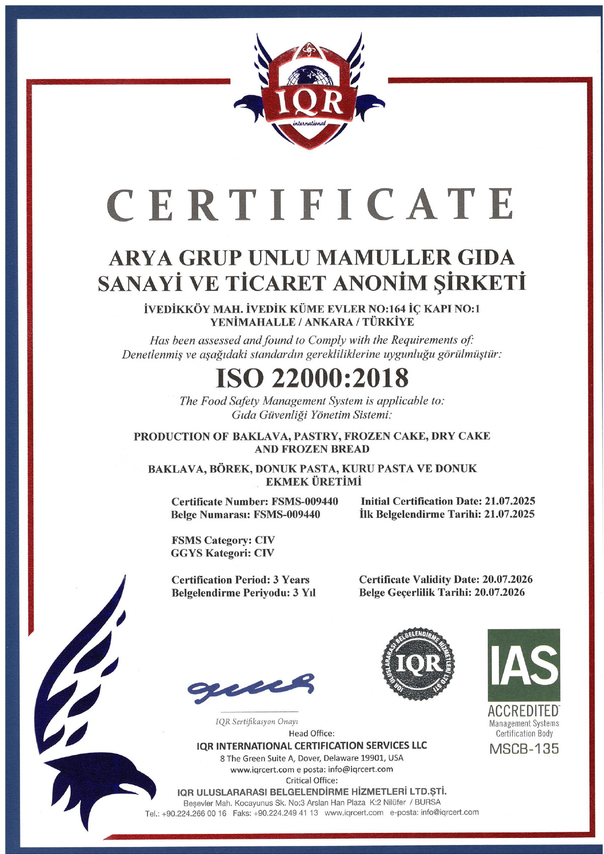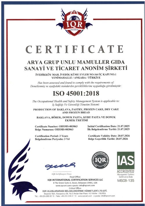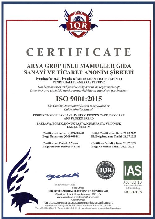 Üretim süreçlerimizde kalite, hijyen ve güvenliği belgeleyen ulusal ve uluslararası sertifikalarımızla, tüketicilerimize her zaman en yüksek standartları sunuyoruz.